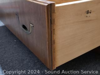 In great cosmetic condition, some minor scuffs on the top. All wood construction, dovetail joinery, roller drawer guide. 29" H x 31.5" W x 19" D.