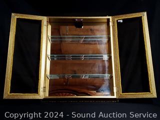 Lot #0109: Golden Finish Mirrored Knick Knack Wall Mount Display Cabinet