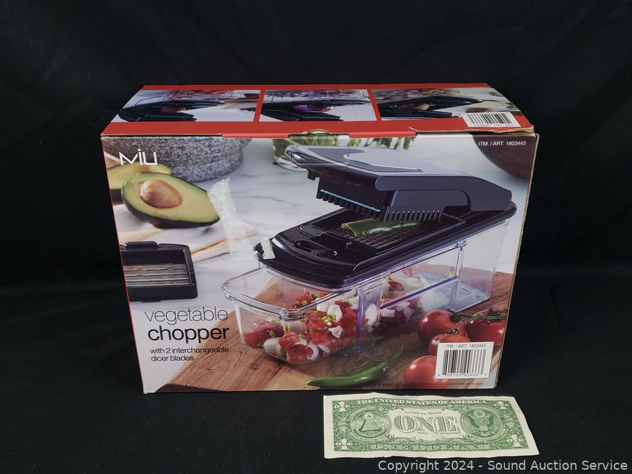 Lot #0257: Miu Vegetable Chopper w/2 Interchangeable Dicer Blades