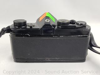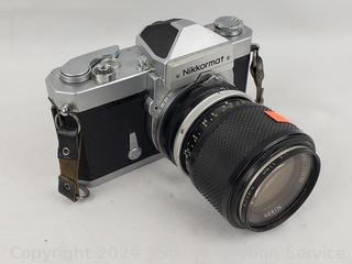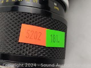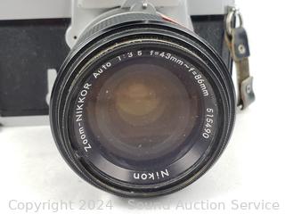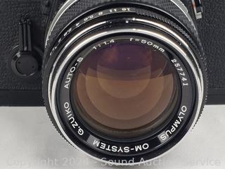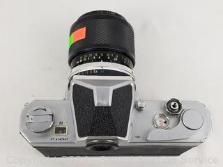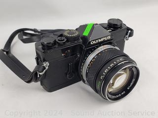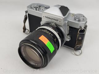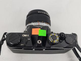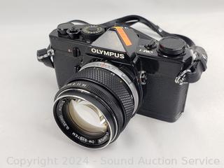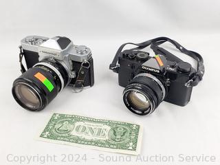 Olympus OM-1 w/1:1.4 f=50mm lens & Nikkormat w/1:3.5 f=43-86mm lens. Shutters appear to be functioning as intended, otherwise untested.