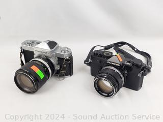 Lot #0181: Nikkormat & Olympus Film Cameras w/Lenses