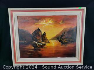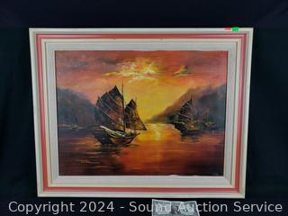 Lot #0313: Original T.Wilder Signed Asian Ship Oil Painting