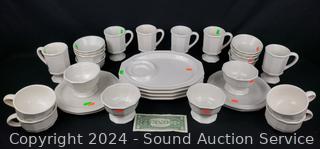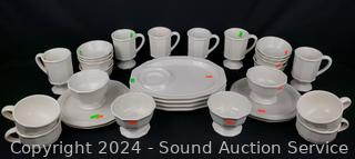 4 Luncheon plates, 8 small 4.5" berry bowls, 4 compotes, 4 teacups, 6 coffee cups, 4 8.5" plates. See some chips, wear from use. Refer to photos for more details.