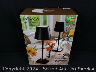 Lot #0204:     2 Mikasa Black Touch Control Rechargeable Table Lamps