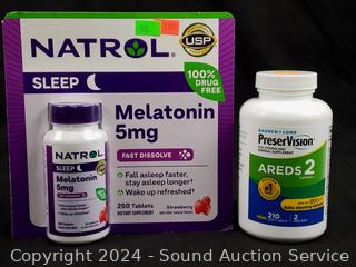 Lot #0168: 250ct Natrol Melatonin 5mg & 210ct PreserVision Areds 2 Mineral Supplement