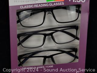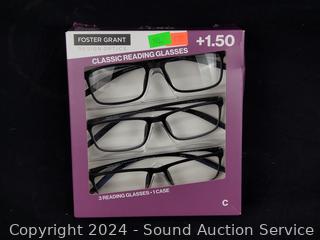 Lot #0193: 3 Foster Grant Classic +1.5 Reading Glasses w/1 Case