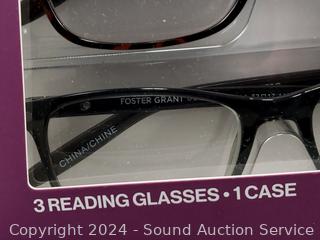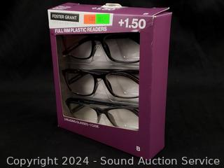 Lot #0181: 3pk Foster Grant Full Rim +1.5 Reading Glasses w/1 Case