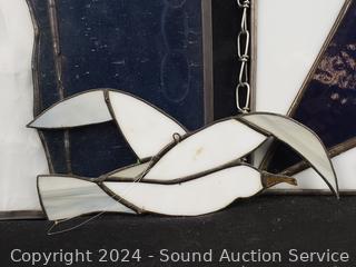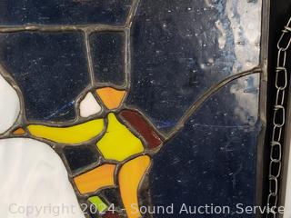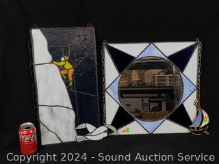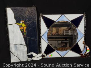 Lot #0337: 4pc Mt. Climber, Ship, Seagull, Sun Stained Glass Window Decor