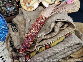 Lot #0318: Assorted Crafted Decor, Burlap Bags