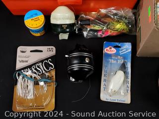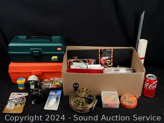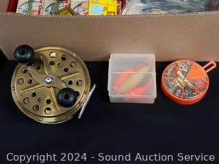 Fishing line, reels, bobbers, lure, weights, etc. Refer to photos for lot contents, more details.