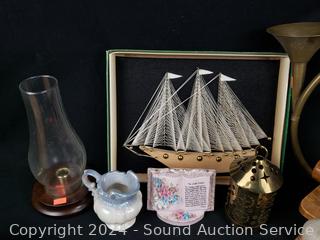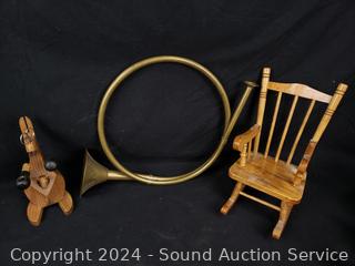 String art kit, brass horn, doll chair, glass insulators & more. Refer to photos for more details.