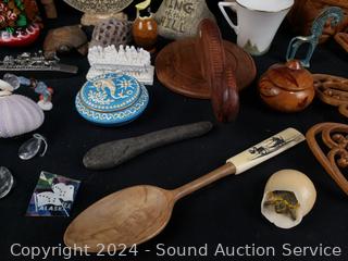 Jardania, Wood Totem, Carved Wood Bookend, Wood Mug, Trinket Boxes, etc. Refer to photos for more details.