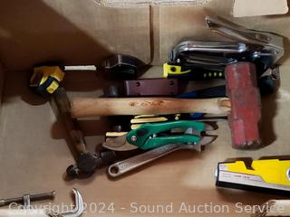 Level, hobby craft kit, hand tools, hammers, mallets, precision screwdrivers, nut drivers, hardware organizer, etc. Refer to photos for lot contents, more details.