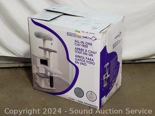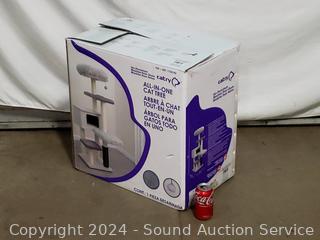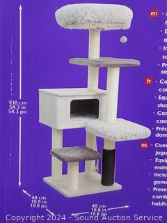 Appears to have been previously assembled, "Cat didn't like", currently unassembled in original packaging. Appears complete, in good condition. 54.3" H x 18.8" x 18.8".