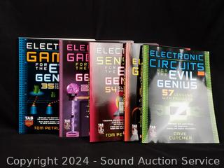5 Volumes Electronic Games Literature, The Toy Shop Mechanical Models Kit, Microcomputer Trainer, Electronic Learning Lab. Unknown completeness, refer to photos for more details.
