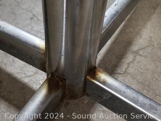 Some indents, stains, dirty spots in vinyl, rust spots, wear to finish. 41.5" H x 20" W x 28" to seat.