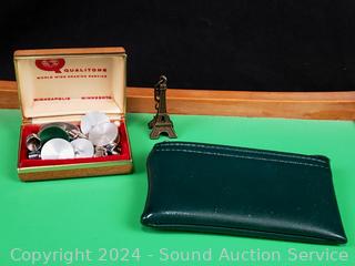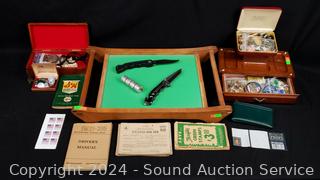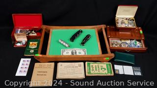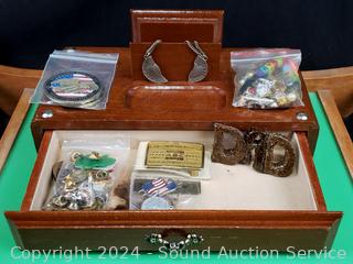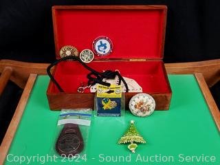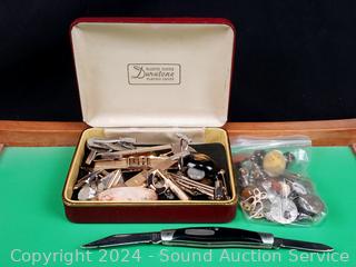Lot #0223: Men's Pins, Cufflinks, Trinet Boxes, Challange Coins, Folding Pocket Knives