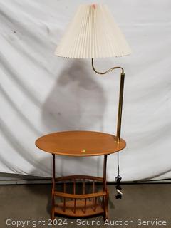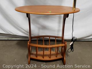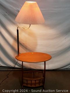 Lot #0022: Oak 2-Tier Floor Lamp Side Table