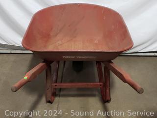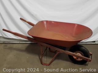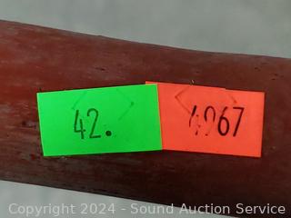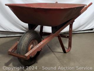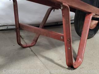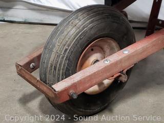 Inflatable tire (flat, unsure if holding air). Various wear from use.