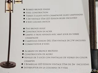 Lot #0075: Style Craft Bronze Finish 3-Light Floor Lamp
