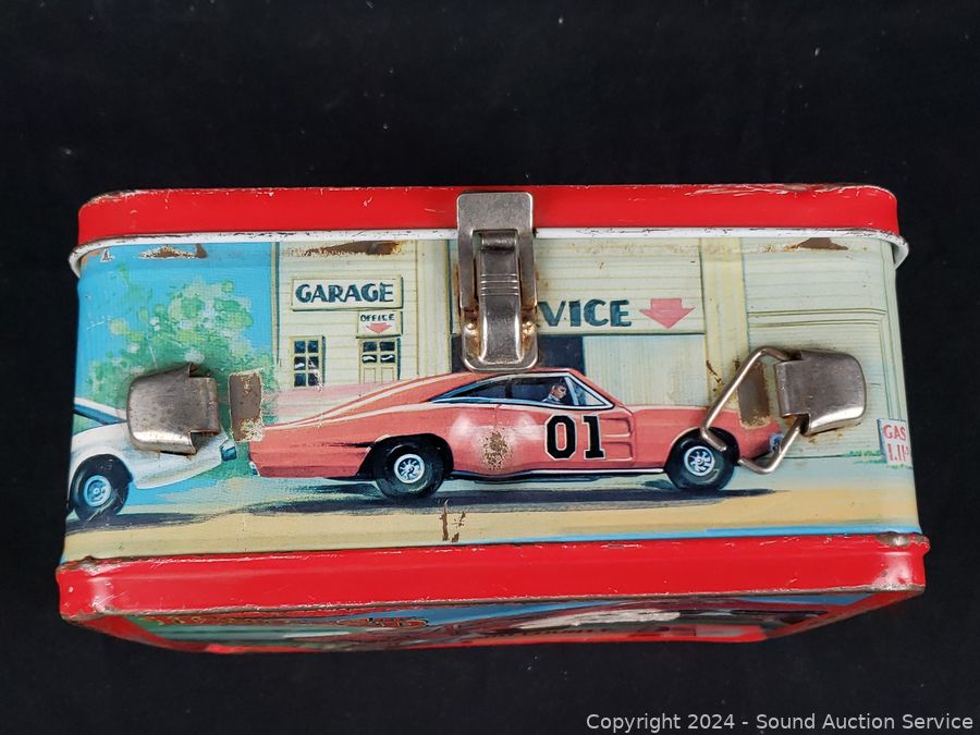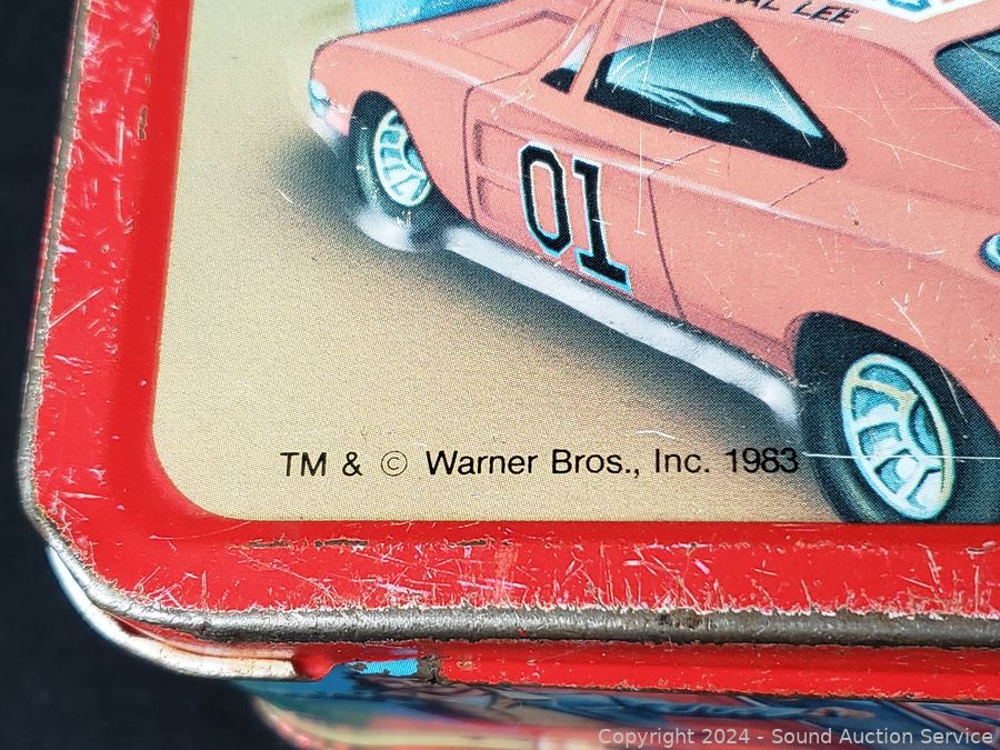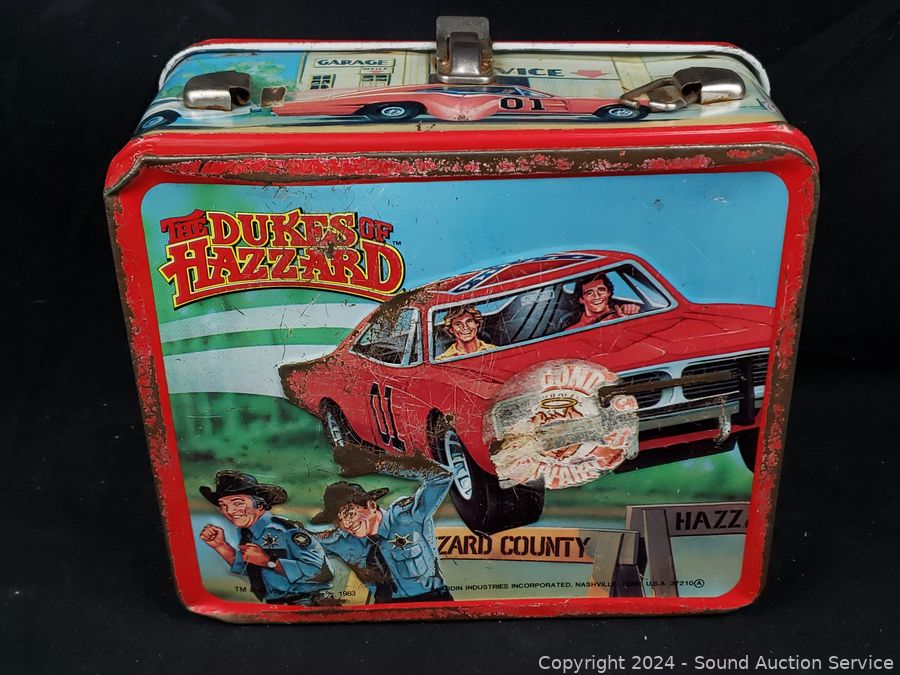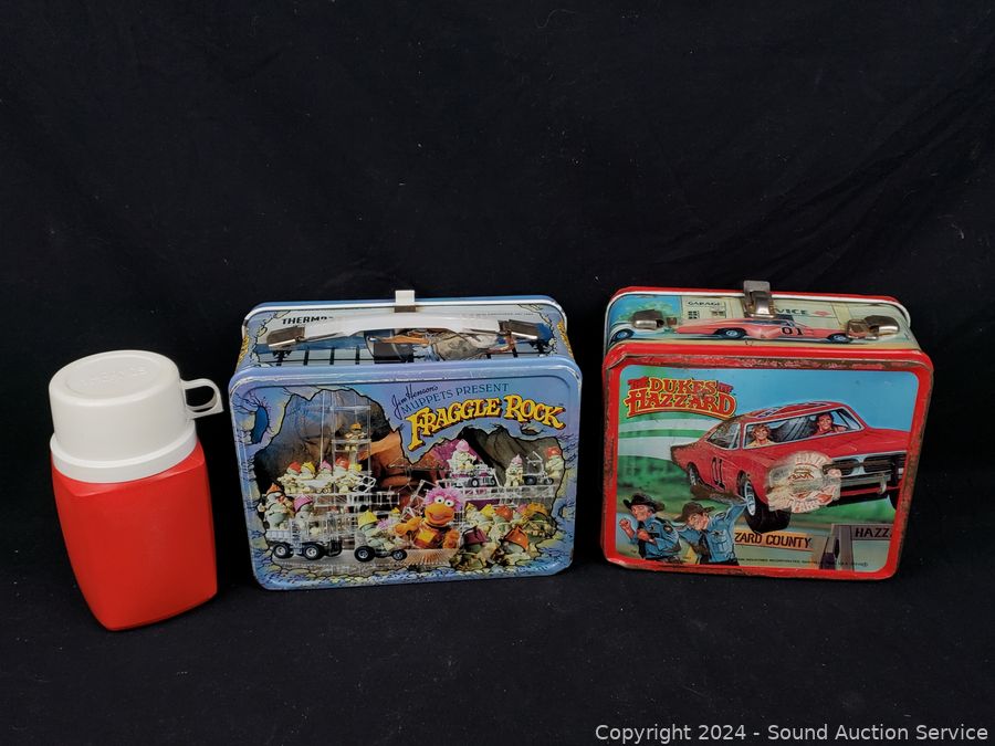 1984 Thermos Fraggle Rock, 1983 The Dukes of Hazard (missing handle), no thermoses. Various wear from age, use.