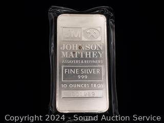 Lot #0059: 10 Troy Ounce .999 Fine Silver Bar