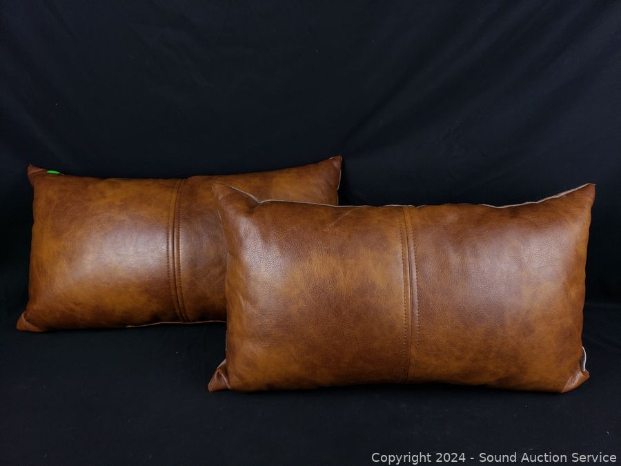 Lot #0214: 2 Studio Chic Cognac 14" x 24" Throw Pillows