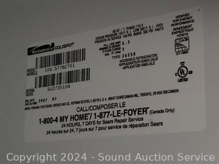 Water & ice dispenser. Signs of wear from use, could use a proper cleaning. Pulled from the home for a proper cleaning. 70" H x 36" W x 31" D. Model 106.57782701, Serial SU2735104.