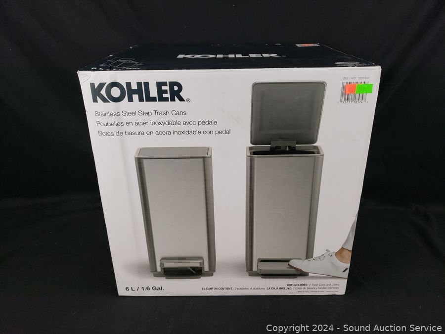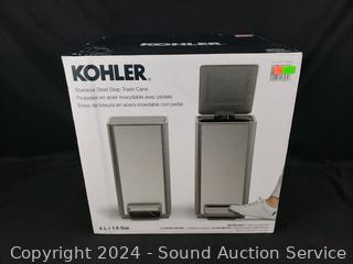 Lot #0240: 2pk Kohler Stainless Steel Step 1.6 Gal. Waste Bins