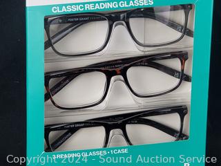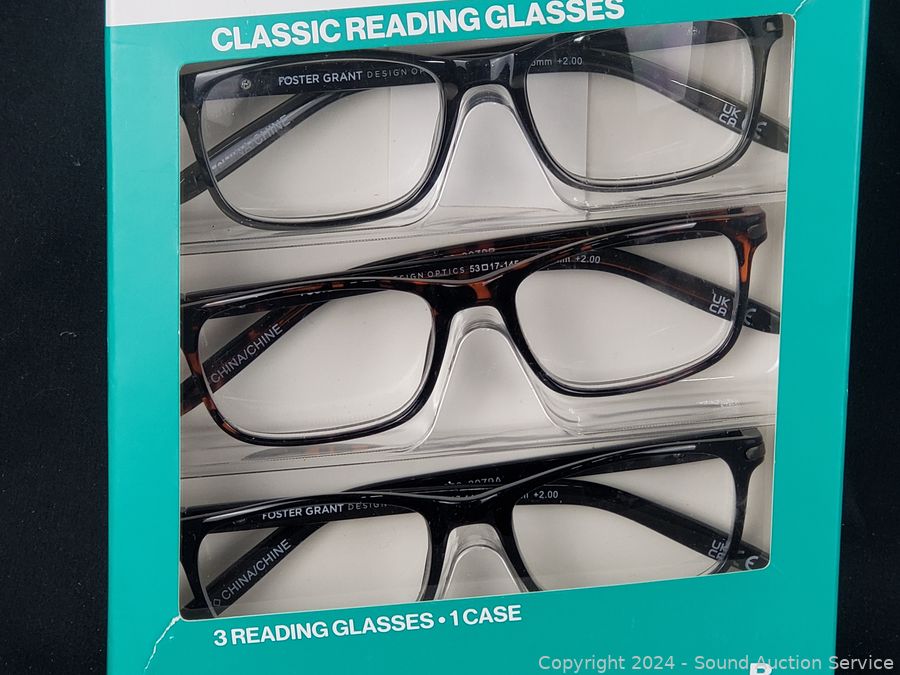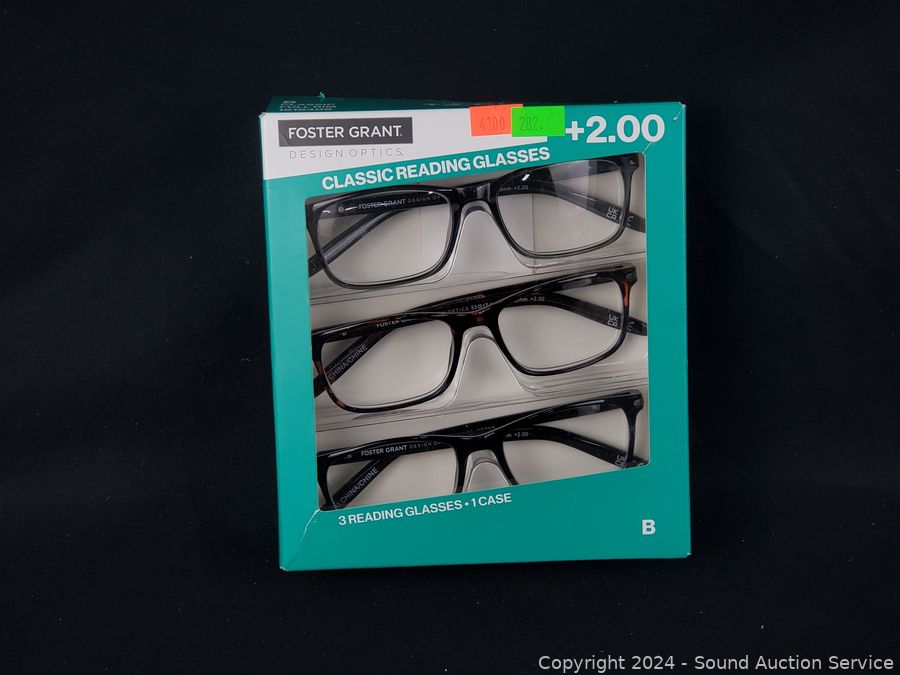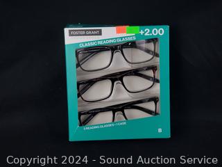 Lot #0282: 3 Foster Grant Classic +2.0 Reading Glasses w/1 Case