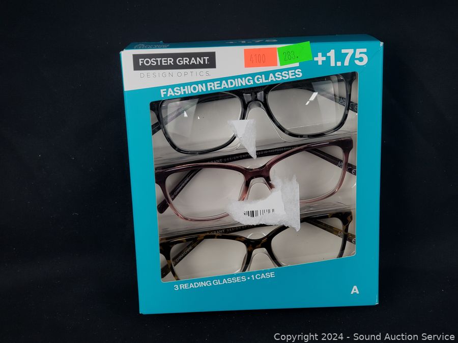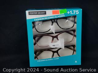 Lot #0283: 3 Foster Grant Fashion +1.75 Reading Glasses w/1 Case