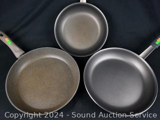 Lot #0198: 3 Tramontina & Ballarini 10" & 12" Non-Stick Skillets