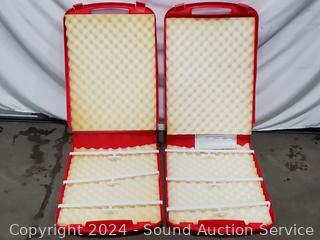 (2) 20" H x 35" x 19.5" with lids, 2 ornament cases 5" x 23.5" x 17", Wreath box (holds up to 20" wreath), wrapping paper box 6" x 38.5" x 12".