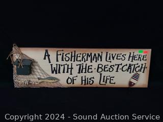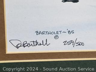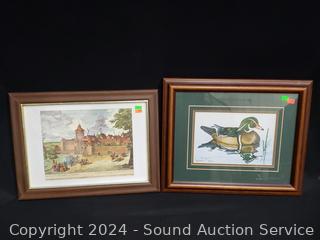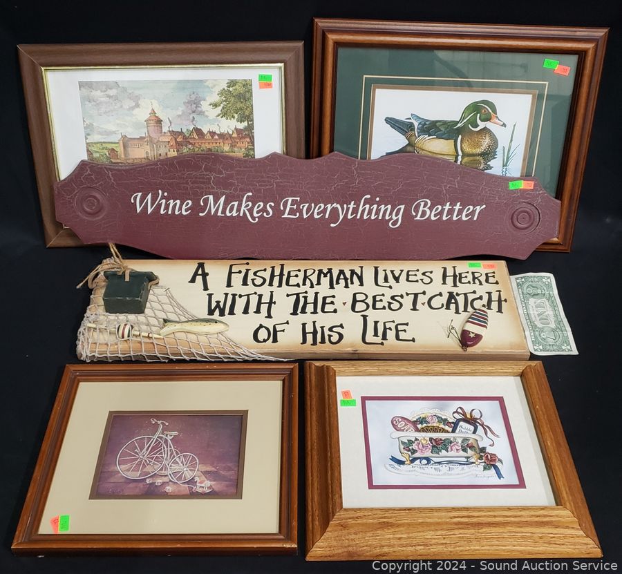 Signed Bartholet limited Duck lithograph, #259/500, Fishing & wine signs, interior accent artwork. Approx. 11" x 13", 24" x 7", 13" x 16", 30" x 7". Refer to photos for more details.
