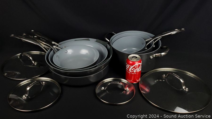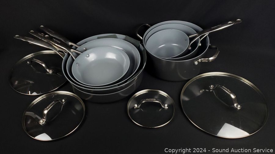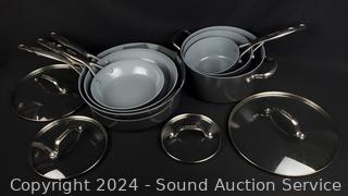 Lot #0177: 7 Greenpan Hard Anodized Ceramic Pots/Pans w/Lids