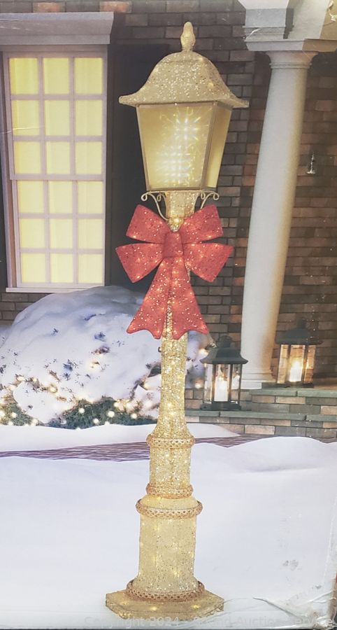 Lot #0232: 7ft Lighted Golden Lamp Post Christmas Decor