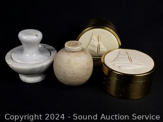 340 Lots including Incredible Massive Wood Model Sail Ship, Weiman 3pc Beige Sectional Sofa, Whirlpool Pedestal Front Load Washer & Dryer, Frederic Remington Bronze Sculptures, Terracotta Warrior Sculpture w/Swords, Enameled Burl Bedroom Set, Black Enameled Queen Bed Set, Legett & Platt Queen Adjustable Base w/Mahogany Poster Bed , Husky Steel Locking Rolling Workbench, Carved Wood Queen Sleigh Bed, Damascus Knives, Ladders, Silver Rounds/Bullion, Porcelain Chinese Decor, 22K Gold Tea Set, BB Rifles, Bella Russo Bags, Tools, Bull Horn Mounts, Assorted Kitchen Cookware, Assorted Household Goods, Assorted Health Beauty Products, Trading Cards & Much More!!!