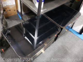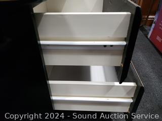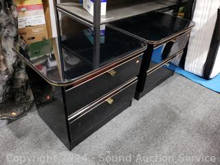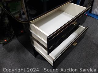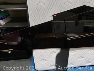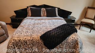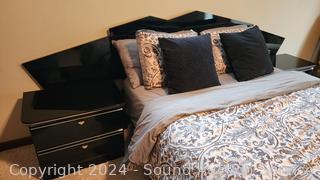 Lot #0013: Black Enameled Queen Bed w/Mattress, Boxspring, Matching Nightstands & Bedding