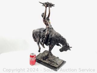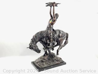 Lot #0005: Bronze Frederic Remington Signed Native Rider Sculpture