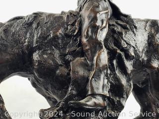 Approx. 26.5" H x 20" x 8". Don't see any major issues. Signed on the base. Frederic Sackrider Remington was an American painter, illustrator, sculptor, and writer who specialized in the genre of Western American Art. His works are known for depicting the Western United States in the last quarter of the 19th century and featuring such images as cowboys, American Indians, and the US Cavalry. Born: October 4, 1861, NY, December 26, 1909 (age 48 years), Ridgefield Ct.