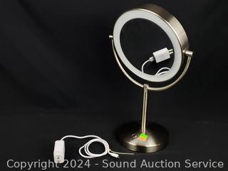 Lot #0271: Brushed Nickel LED Rechargeable Magnifying Vanity Mirror