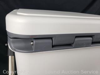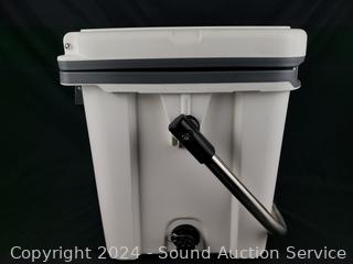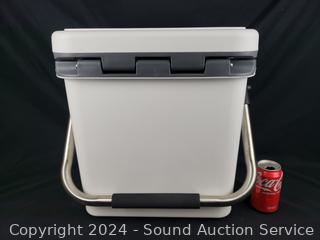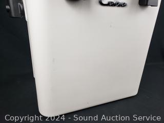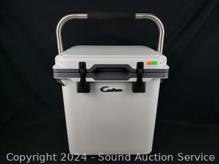 17.5" H x 16" W x 14.5" D. Minor cosmetic wear from use, don't see any major issues.