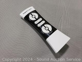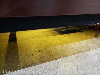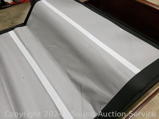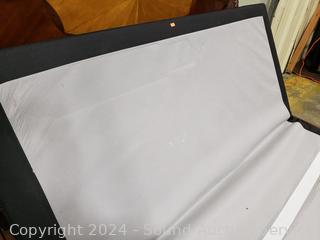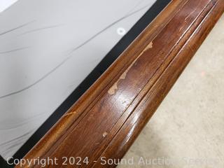 Approx. 85" H x 64" W headboard, 15" H x 59.5" x 80" platform base. Appears to be functioning as intended, comes with one remote. Some scuffs, wear to finish.