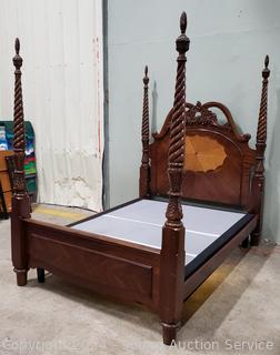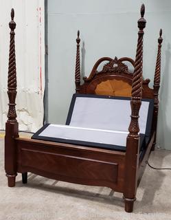 Lot #0028: Legett & Platt Queen Adjustable Base w/Mahogany Poster Bed
