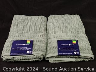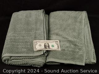Lot #0270:     2 Green Cotton Bleeker & Main 30" x 58" Cotton Bath Towels