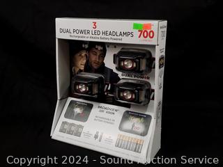 Lot #0268: 3pc Dual Power LED 700LM Headlamps