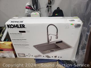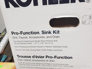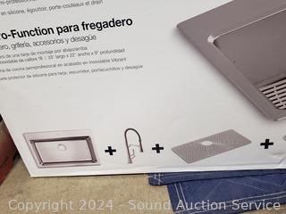 33" x 22" x 9" 18GA Stainless Single Basin Sink, Semi-Professional Pull-Down Kitchen Faucet, Silicone Sink Mat, Drying Rack, Knife Holder, and Drain.