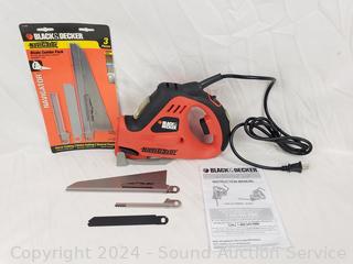 Appears to be functioning as intended, in great cosmetic condition. Comes with 2 blades, manual.