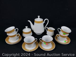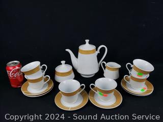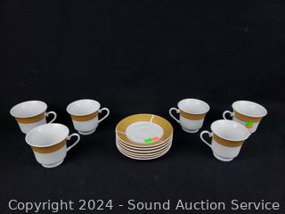 6 cups, 6 saucers, cream, sugar, teapot. Don't see any major issues.
