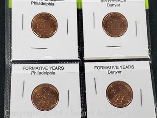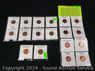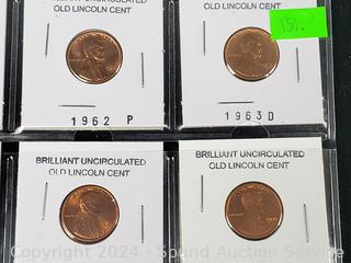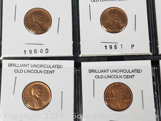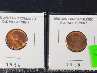 1956 & 1958 BU old wheat cents, set of 8 2009 Lincoln cents, set of 8 BU old Lincoln cents.